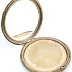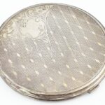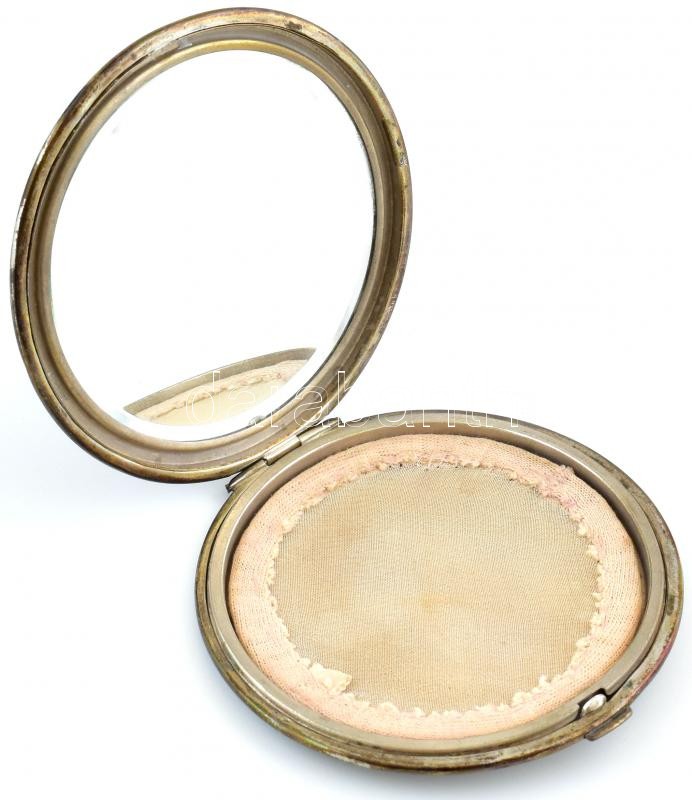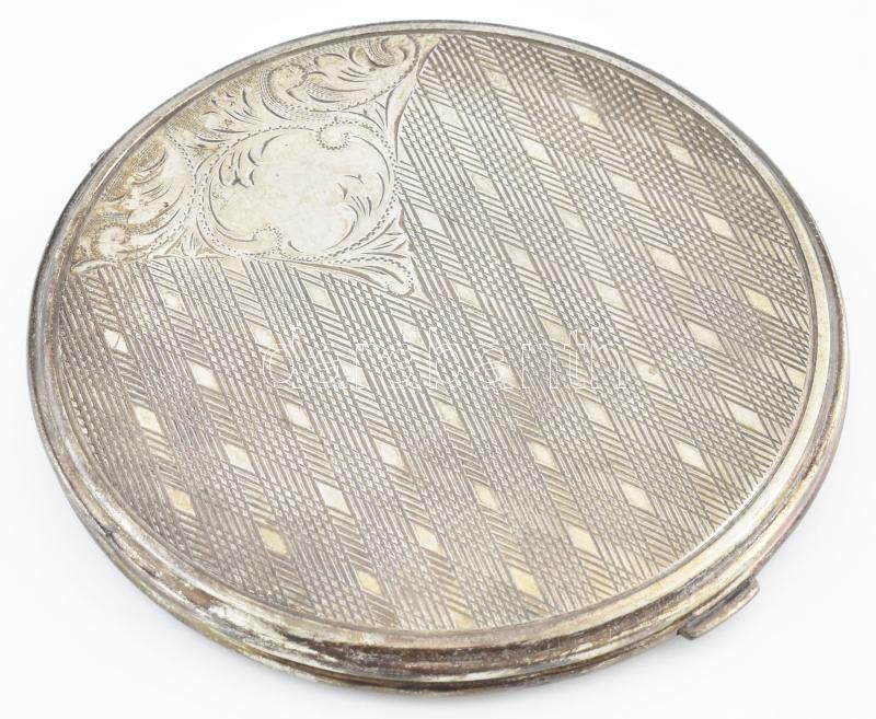Ezüst (Ag) pudrié, kopott, vésett, jelzett, belsejében fém betéttel, bruttó: 155g, d:10cm