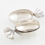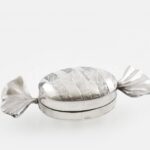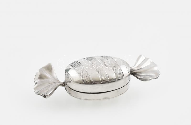Ezüst (Ag) szaloncukor formájú gyógyszeres dobozka. Angol, jelzett 12 g 7 cm