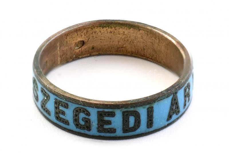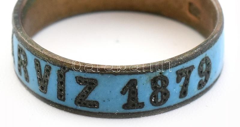 Ezüst (Ag) Szegedi Árvíz 1879, zománcozott gyűrű, jelzett, Br.:2,4g, m:57