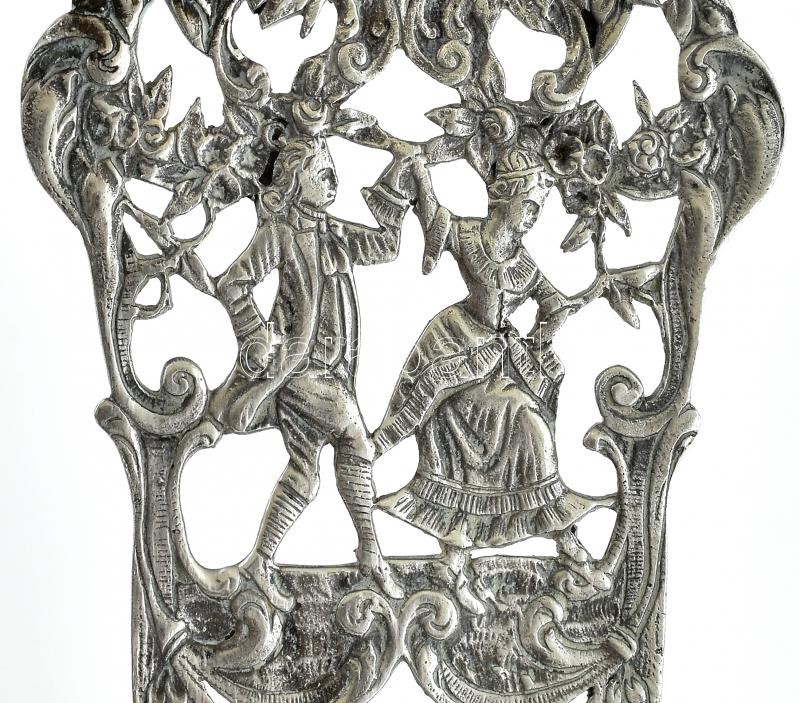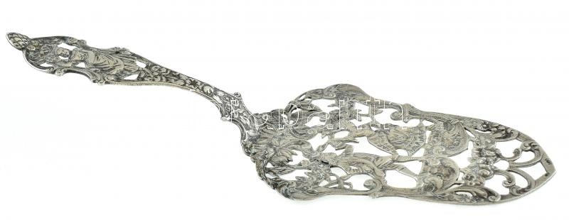 Ezüst (Ag) tortalapát, gazdag, barokk figurális díszítéssel, jelzett, nettó: 67,9 g, h: 21,5 cm