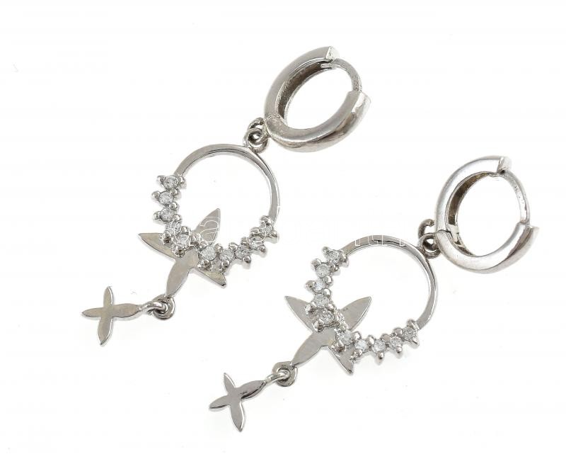 Ezüst(Ag) apró köves, csillagos fülbevalópár, jelzett, h: 4 cm, bruttó: 5 g