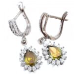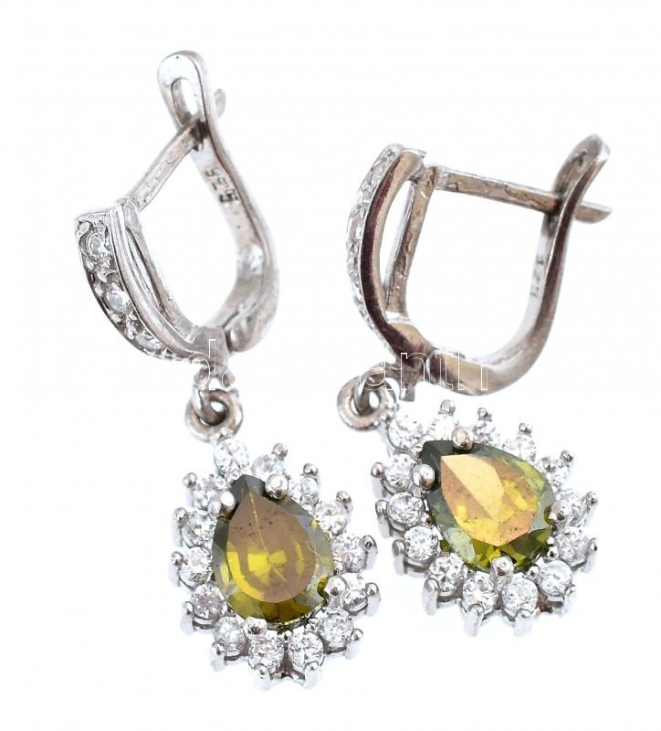 Ezüst(Ag) csepp alakú fülbevalópár zöld kővel, jelzett, h: 3 cm, bruttó: 5,6 g