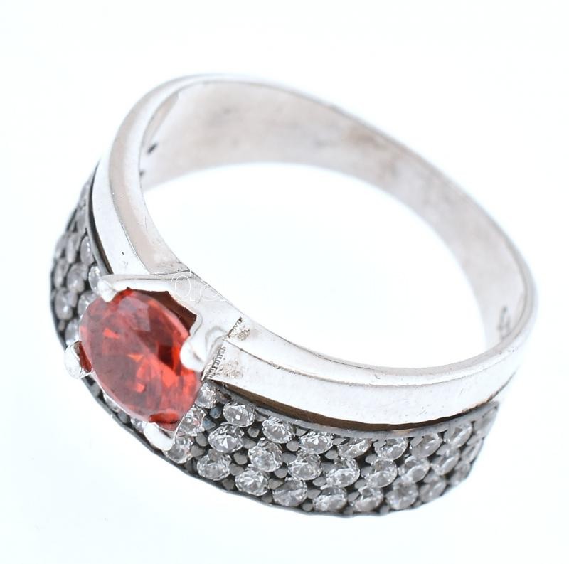 Ezüst(Ag) dupla gyűrű piros kővel, jelzett, méret: 54, bruttó: 4,35 g