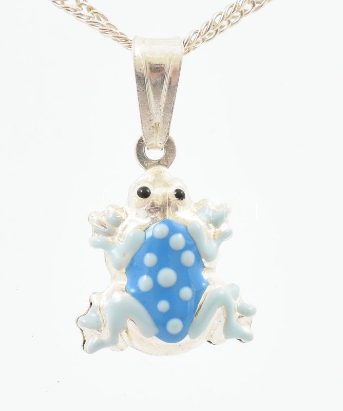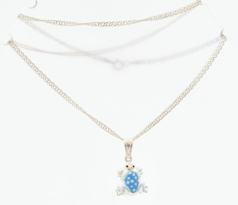 Ezüst(Ag) duplaszemes nyaklánc béka medállal, jelzett, h: 40 cm, bruttó: 3,8 g