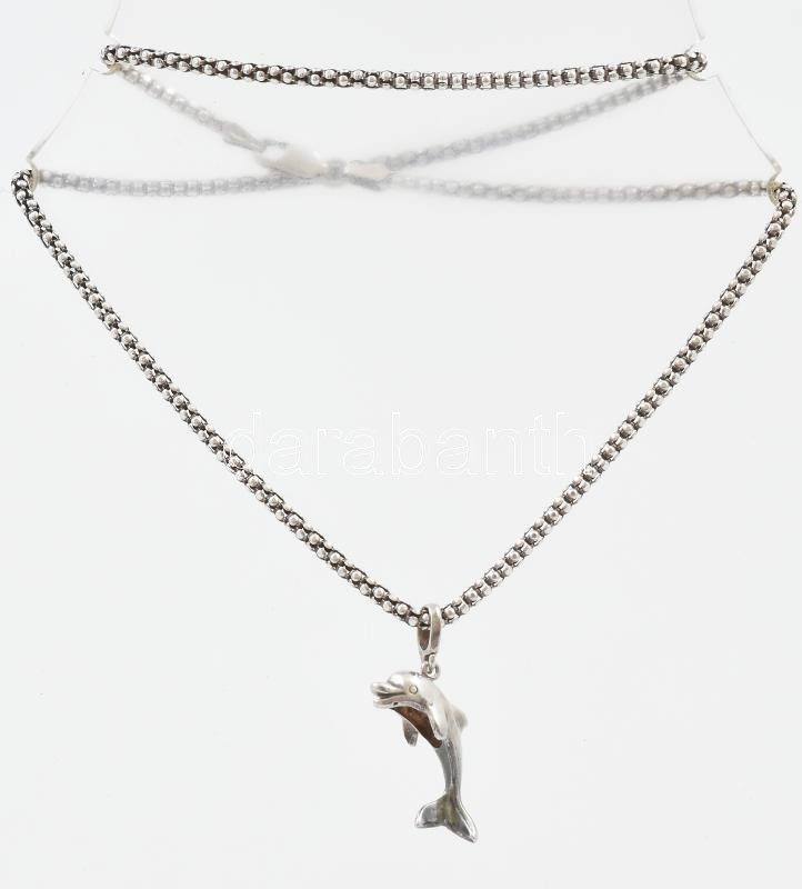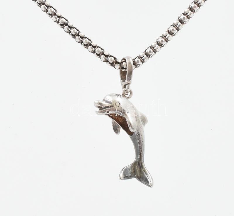 Ezüst(Ag) fantáziaszemes nyaklánc delfin függővel, jelzett, h: 42 cm, 2,7×1,3 cm, nettó: 6,2 g<a href="https://www.darabanth.com/hu/gyorsarveres/422/kategoriak~Nemesfem-disztargyak-ekszerek-dragakovek/Nemesfem-disztargyak-ekszerek-dragakovek~1000024