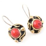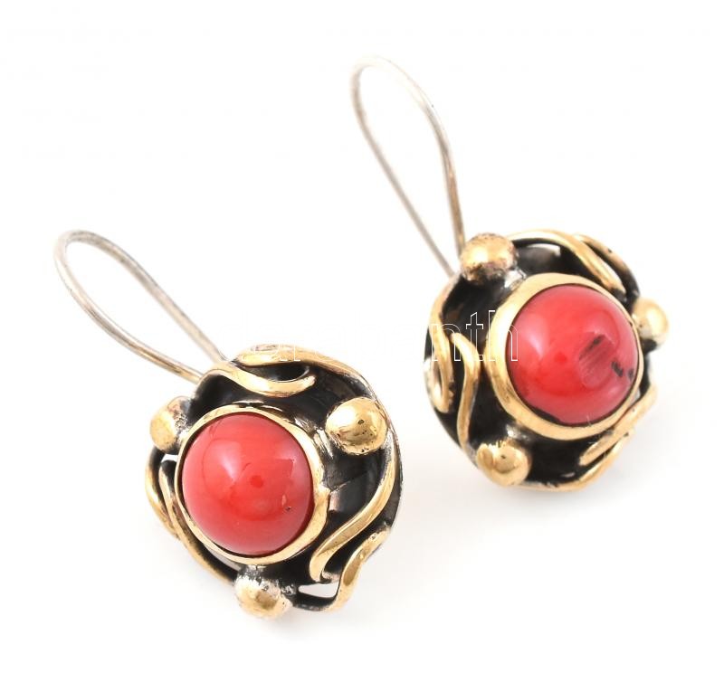 Ezüst(Ag) fülbevalópár korallal, jelzett, d: 1,5 cm, bruttó: 6,93 g
