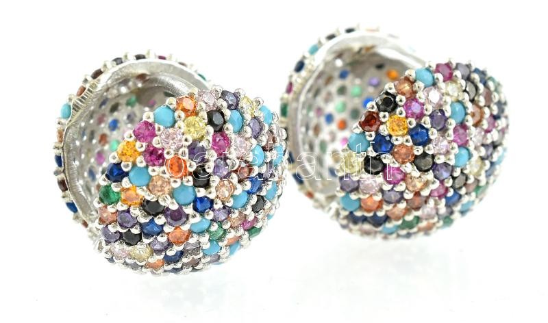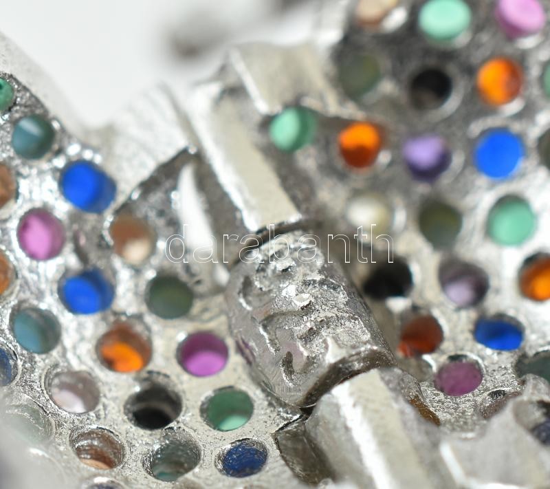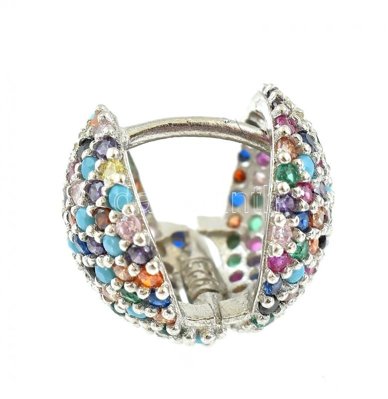 Ezüst(Ag) fülbevalópár színes kövekkel, jelzett, d: 1,5 cm, bruttó: 5,87 g