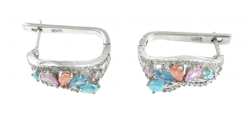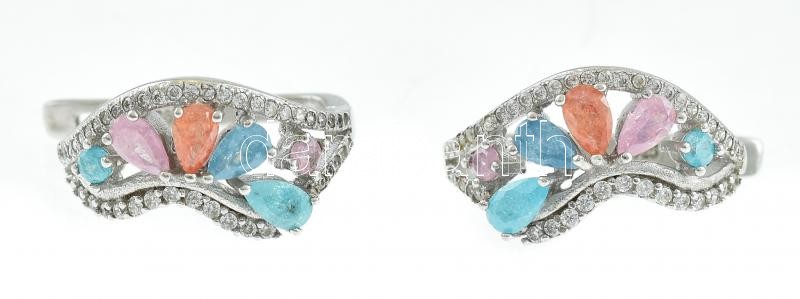 Ezüst(Ag) fülbevalópár színes kövekkel, jelzett, h: 2 cm, bruttó: 7 g