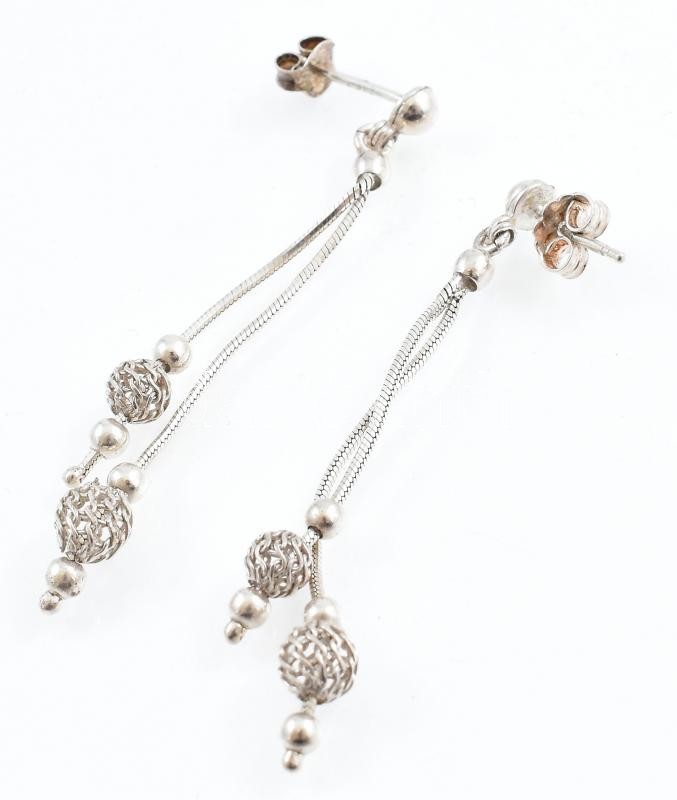 Ezüst(Ag) gömbös fülbevalópár, jelzett, h: 6 cm, nettó: 3,3 g