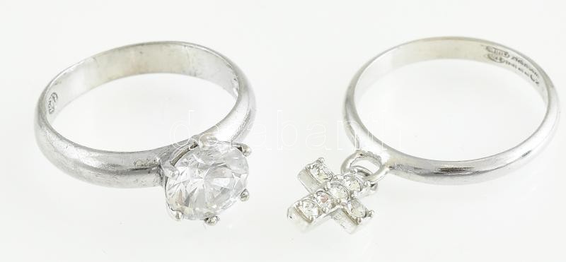 Ezüst(Ag) gyűrű, 2 db, jelzett, méret: 55, 56, bruttó: 5,6 g