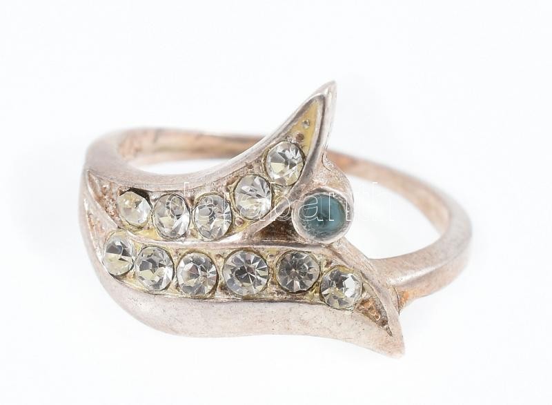 Ezüst(Ag) gyűrű apró kövekkel, jelzett, méret: 54, bruttó: 3,1 g<a href="https://www.darabanth.com/hu/gyorsarveres/417/kategoriak~Nemesfem-disztargyak-ekszerek-dragakovek/Nemesfem-disztargyak-ekszerek-dragakovek~32/EzustAg-gyuru-apro-kovekkel-jelzet