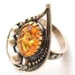 Ezüst(Ag) gyűrű borostyánnal, jelzett, méret: 58, bruttó: 8,15 g<a href="https://www.darabanth.com/hu/gyorsarveres/421/kategoriak~Nemesfem-disztargyak-ekszerek-dragakovek/Nemesfem-disztargyak-ekszerek-dragakovek~1000024/EzustAg-gyuru-borostyannal-je
