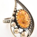 Ezüst(Ag) gyűrű borostyánnal, jelzett, méret: 58, bruttó: 8,15 g<a href="https://www.darabanth.com/hu/gyorsarveres/421/kategoriak~Nemesfem-disztargyak-ekszerek-dragakovek/Nemesfem-disztargyak-ekszerek-dragakovek~1000024/EzustAg-gyuru-borostyannal-je