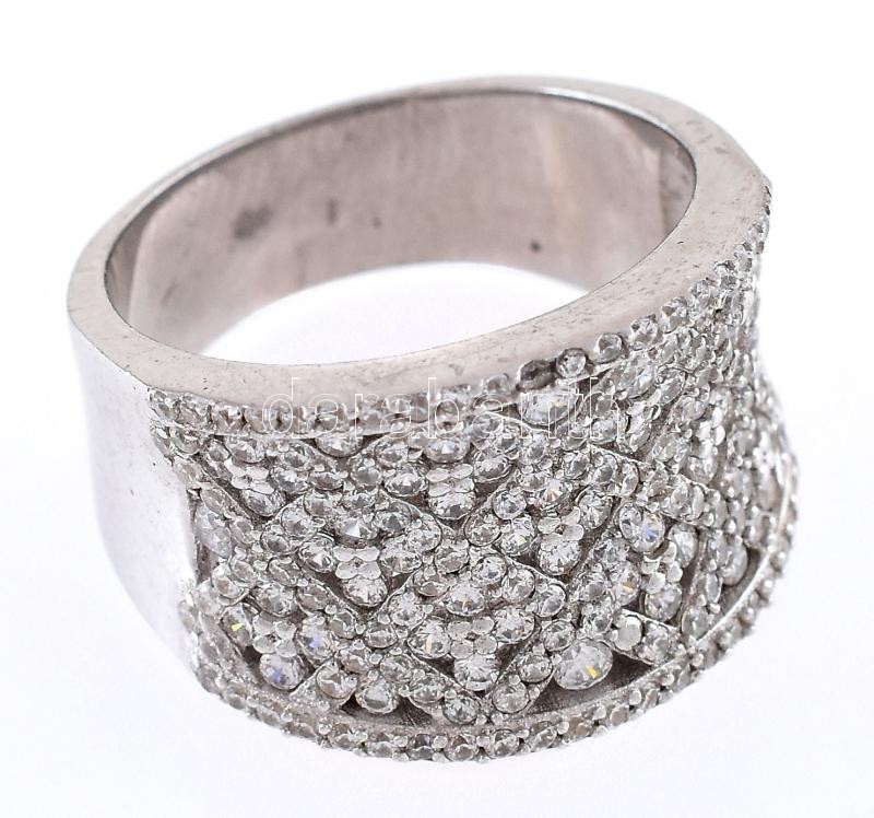 Ezüst(Ag) gyűrű kövekkel gazdagon kirakva, jelzett, kőhiánnyal, méret: 56, bruttó: 7,8 g