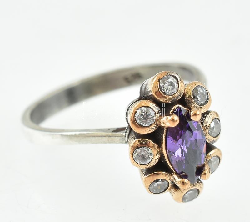 Ezüst(Ag) gyűrű lila és fehér kövekkel, jelzett, méret: 54, bruttó: 3,64 g<a href="https://www.darabanth.com/hu/gyorsarveres/411/kategoriak~Nemesfem-Disztargyak-Orak-es-Ekszerek/Nemesfem-Disztargyak-Orak-es-Ekszerek~505031/EzustAg-gyuru-lila-es-fehe
