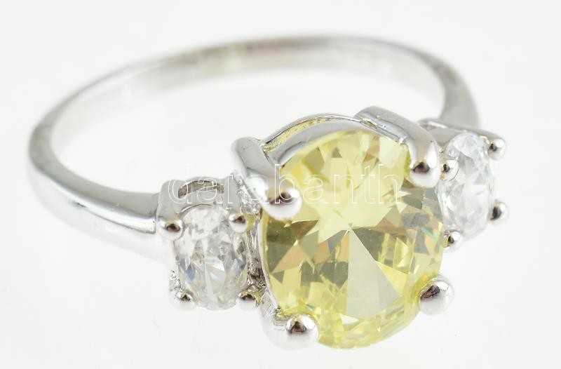 Ezüst(Ag) gyűrű, sárga és fehér kövekkel, jelzett, méret: 56, bruttó: 3,99 g<a href="https://www.darabanth.com/hu/gyorsarveres/410/kategoriak~Nemesfem-Disztargyak-Orak-es-Ekszerek/Nemesfem-Disztargyak-Orak-es-Ekszerek~1000026/EzustAg-gyuru-sarga-es-