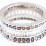 Ezüst(Ag) gyűrű színes kövekkel, jelzett, méret: 56, bruttó: 7,84 g
