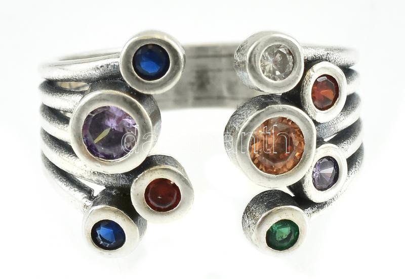 Ezüst(Ag) gyűrű színes kövekkel, jelzett, méret: 59, bruttó: 5,99 g