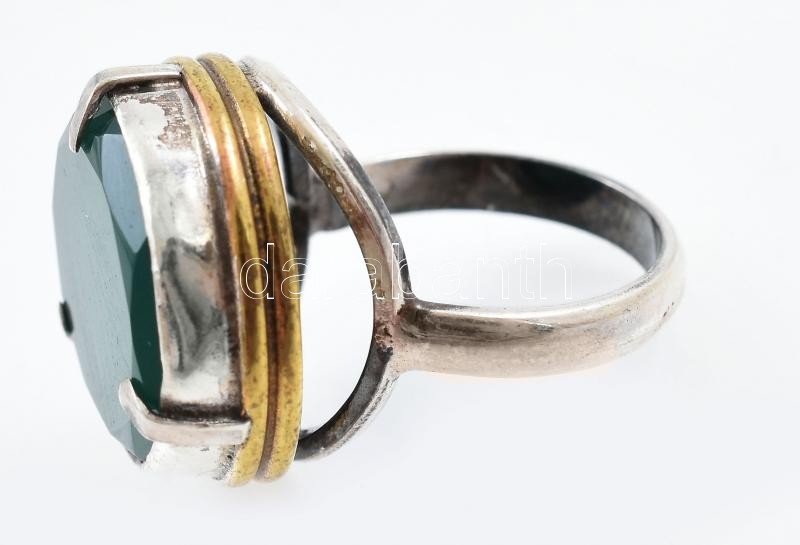 Ezüst(Ag) gyűrű zöld kővel, jelzett, méret: 55, bruttó: 10,1 g<a href="https://www.darabanth.com/hu/gyorsarveres/416/kategoriak~Nemesfem-disztargyak-ekszerek-dragakovek/Nemesfem-disztargyak-ekszerek-dragakovek~500031/EzustAg-gyuru-zold-kovel-jelzett