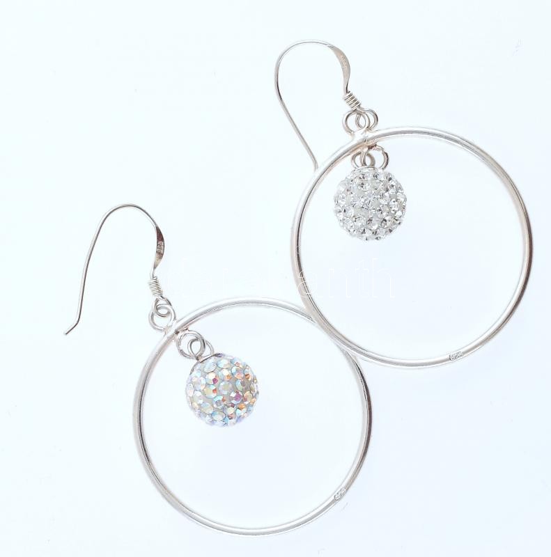 Ezüst(Ag) karikafülbevaló-pár shamballa gyönggyel, jelzett, d: 3 cm, bruttó: 5,29 g
