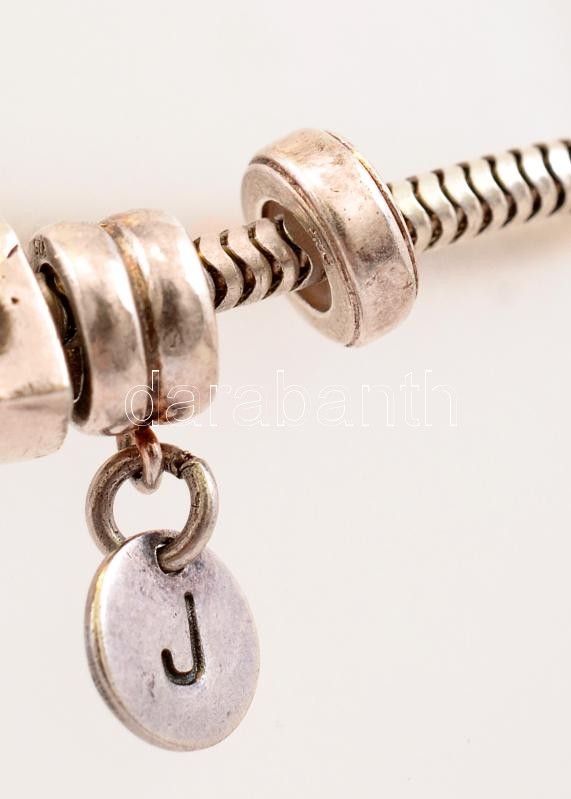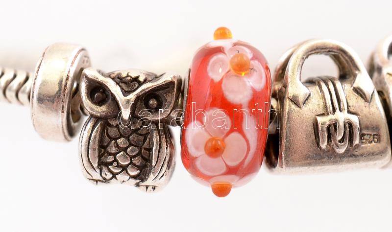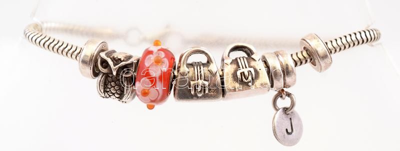 Ezüst(Ag) karkötő, 5 db charmmal, 2 db stopperrel, jelzett, h: 17 cm, bruttó: 19,1 g<a href="https://www.darabanth.com/hu/gyorsarveres/412/kategoriak~Nemesfem-Disztargyak-Orak-es-Ekszerek/Nemesfem-Disztargyak-Orak-es-Ekszerek~500031/EzustAg-karkoto-