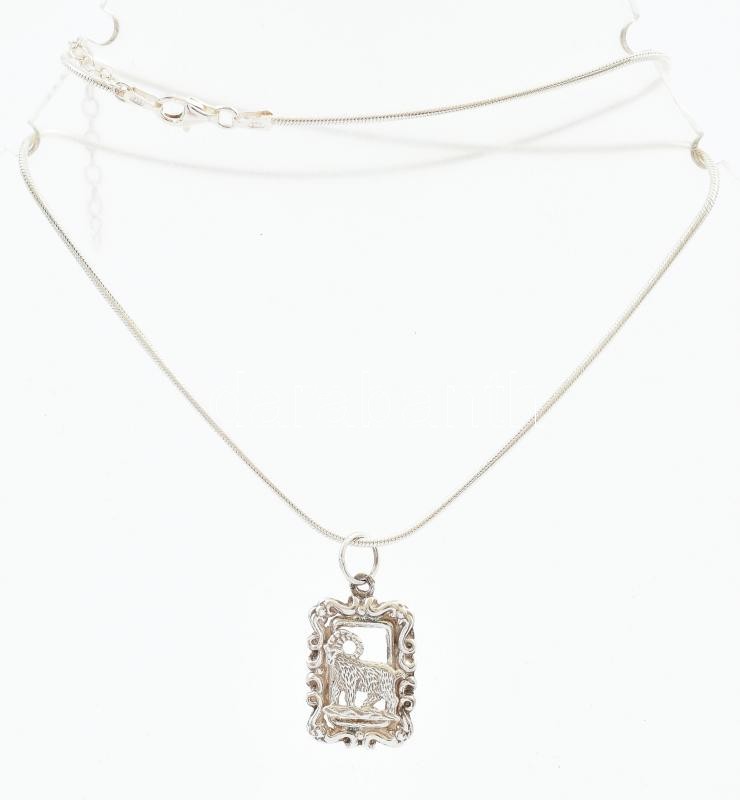 Ezüst(Ag) kígyó nyaklánc bak függővel, jelzett, h: 45-50 cm, 2,7×1,5 cm, nettó: 8,3 g