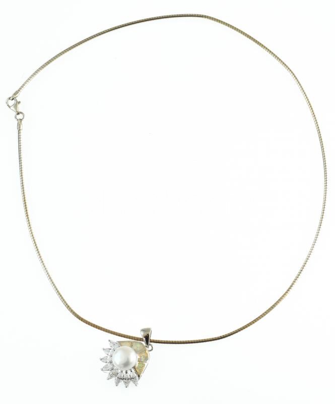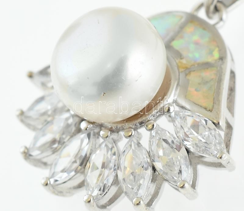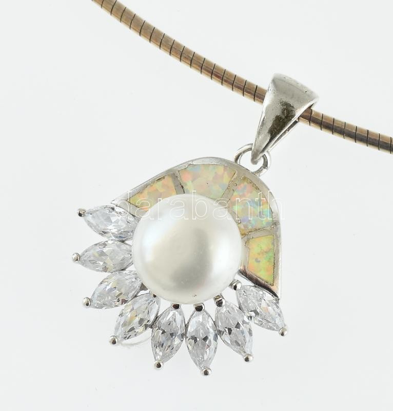 Ezüst(Ag) kígyó nyaklánc gyöngyös medállal, jelzett, h: 44 cm, bruttó: 13,86 g