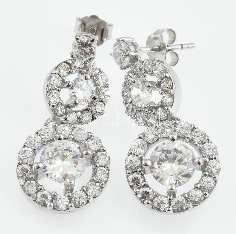 Ezüst(Ag) kövekkel gazdagon kirakott karikás fülbevalópár, jelzett, h: 3 cm, bruttó: 7,68 g