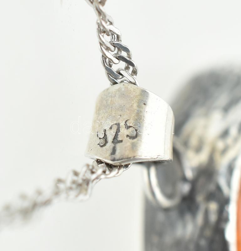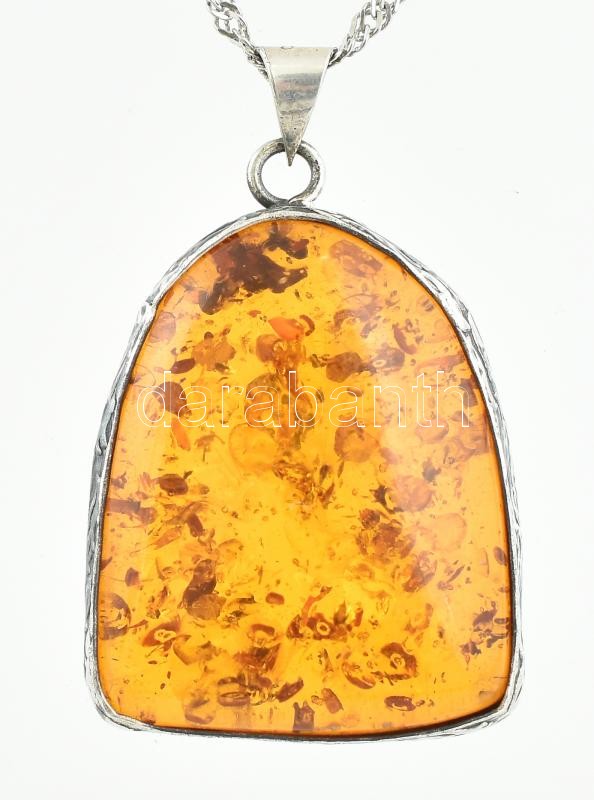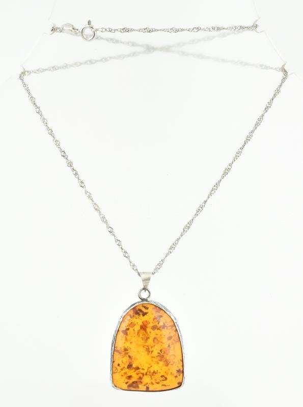Ezüst(Ag) nyaklánc borostyán medállal, jelzett, h: 40 cm, bruttó: 11,1 g