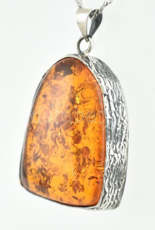 Ezüst(Ag) nyaklánc borostyán medállal, jelzett, h: 40 cm, bruttó: 11,1 g<a href="https://www.darabanth.com/hu/gyorsarveres/411/kategoriak~Nemesfem-Disztargyak-Orak-es-Ekszerek/Nemesfem-Disztargyak-Orak-es-Ekszerek~505031/EzustAg-nyaklanc-borostyan-m