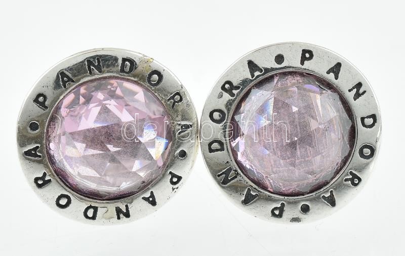 Ezüst(Ag) rózsaszín köves fülbevalópár Pandora jelzéssel, d: 1,3 cm, bruttó: 3,74 g