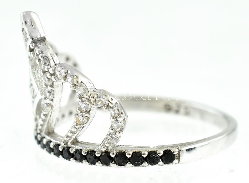 Ezüst(Ag) tiarás gyűrű, jelzett, méret: 55, bruttó: 2,28 g