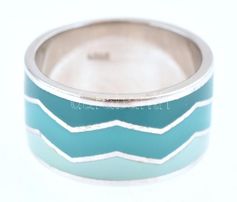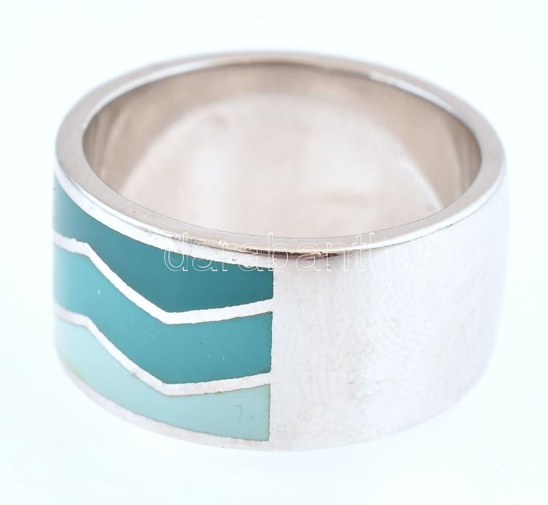 Ezüst(Ag) zománcozott gyűrű, jelzett, méret: 54, bruttó: 6,54 g