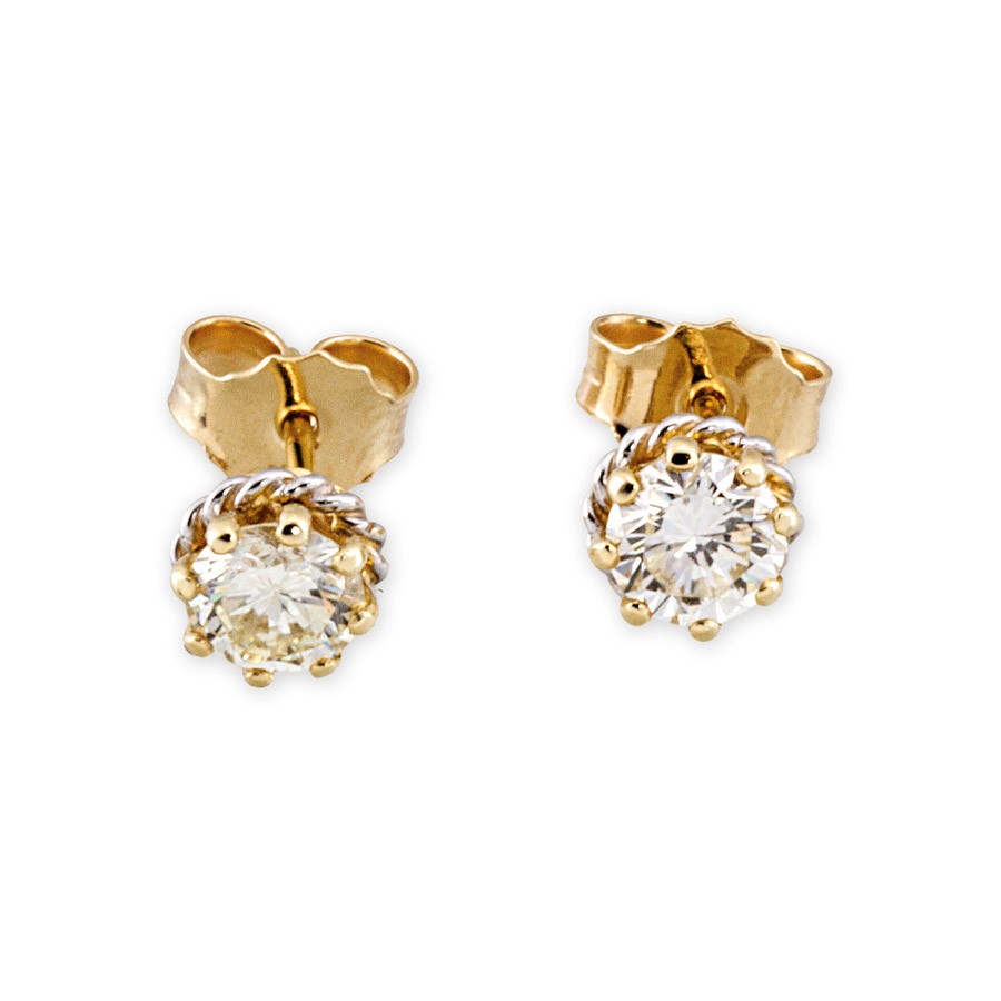 20. sz. vége, 2016 utáni budapesti fémjellel ellátva, 14 k fehér- és sárgaarany, karmos foglalatban 2 db modern csiszolású briliáns cca. 1 ct (M1, Cr-TCa, VSI-SI), 1, 7 g