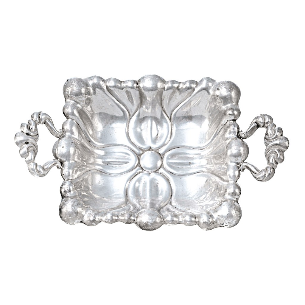 Pest, 1867-1936 közötti fémjel, 800 ezrelékes ezüst, "T(?)" mesterjegy, négy lábon álló, préselt bordás test, hólyagos peremmel