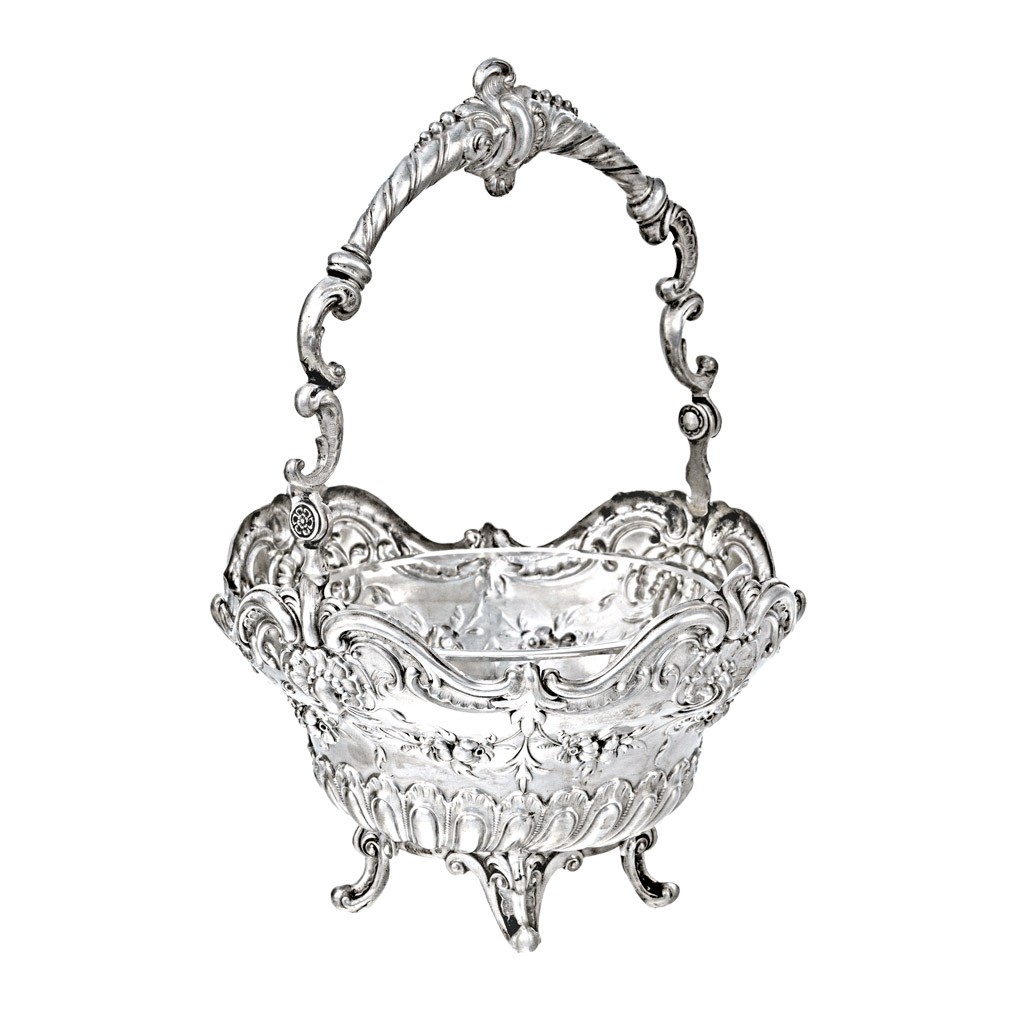 német, 1888 utáni hold korona fémjel, 1872-1902 közötti bécsi behozatali jellel, 800 ezrelékes ezüst, lábakon álló, préselt, domborított gazdag neorokokó díszes test, üvegbetét nem hozzá tartozó
