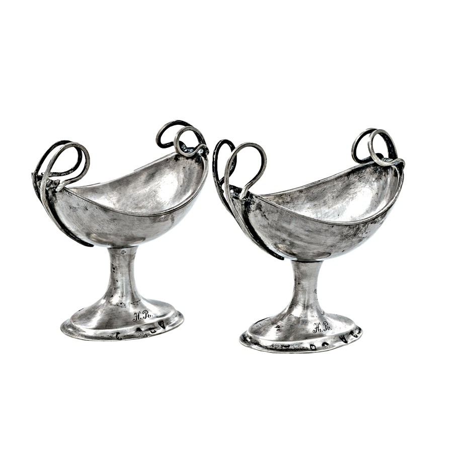 Bécs, 18(1)8, 13 latos antik ezüst, 1807 utáni raktárjelzettel és 1810-1824 közötti kis adóbélyeggel, "IK" (?) mesterjegy, trébelt, sima, csónak forma, kettőzött huzal fülekkel, 116 g; 7, 5*7, 7*4 cm