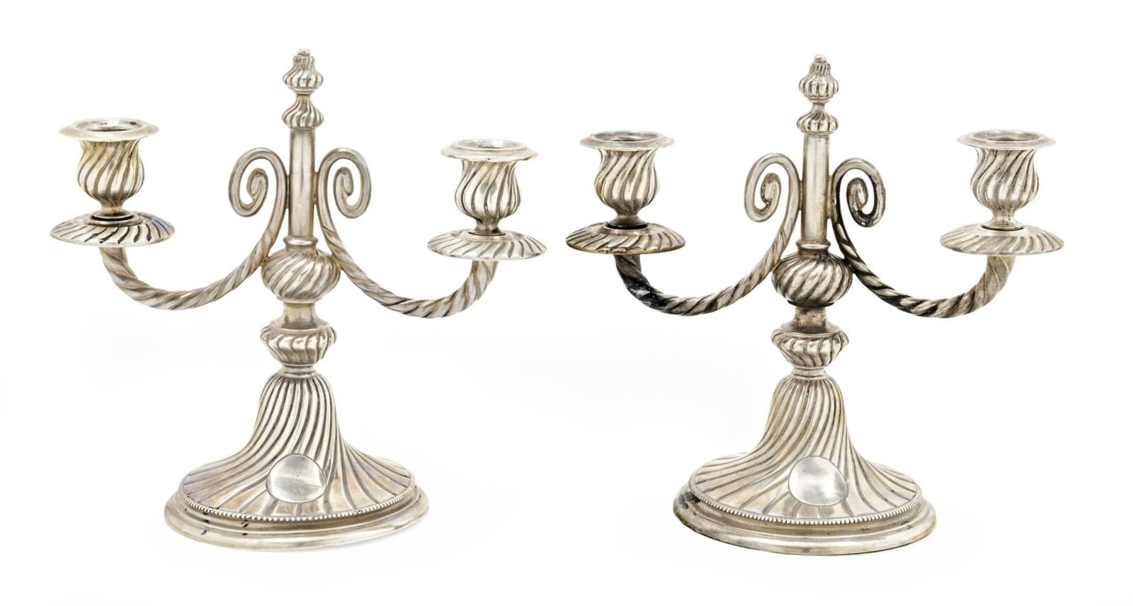 magyar, 1867-1937 közötti fémjellel, 800 ezrelékes ezüst, VCD mesterjeggyel, kétágú karok, csavart díszítéssel, m: 21 cm, 594 g