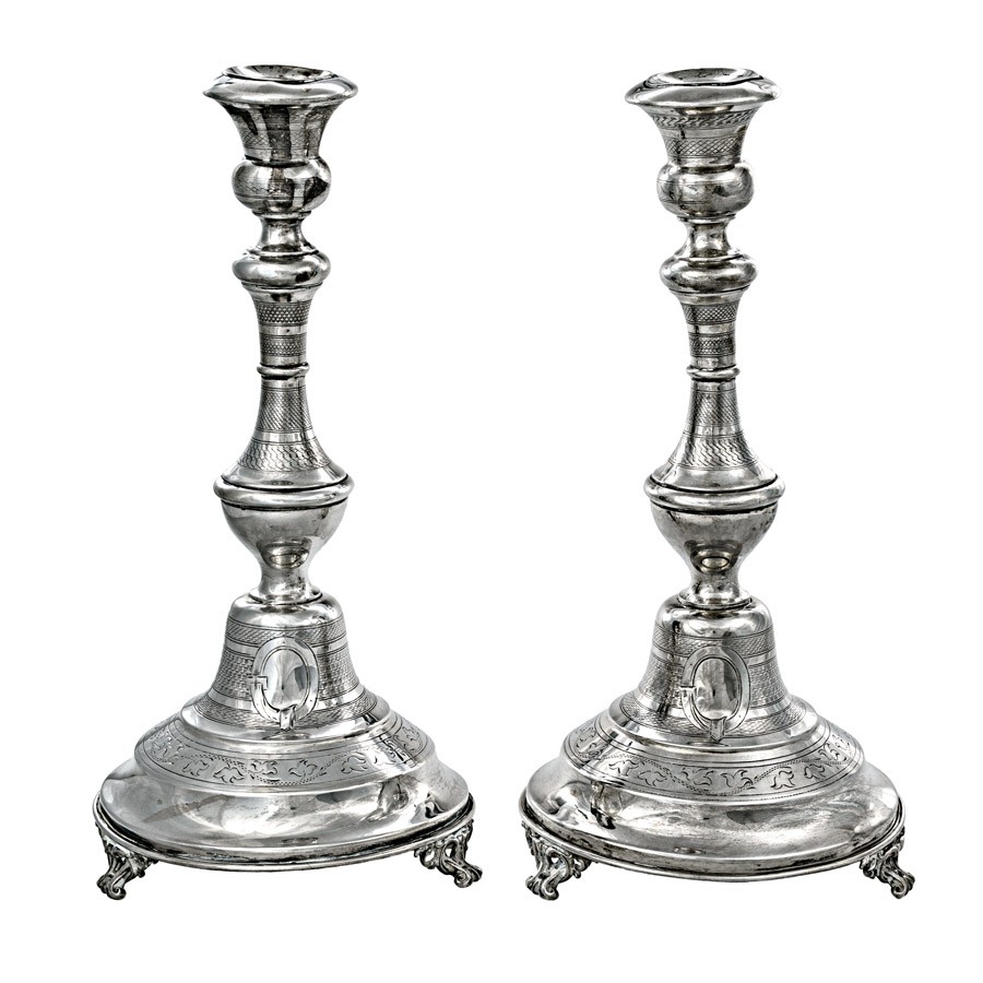 Bécs, 1872-1922 közötti fémjel, 800 ezrelékes ezüst, kivehetetlen mesterjegy, fémnyomott, préselt, gépi vésett díszítéssel, 580 g; m: 31 cm