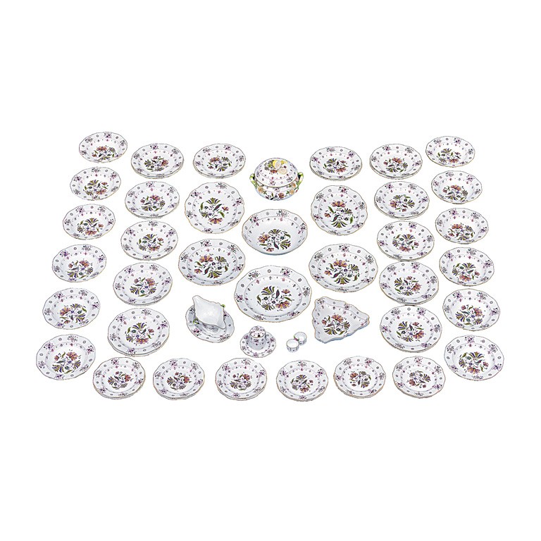 1896 körül, "Grand Hongrois" mintájú festett porcelán, jelezve az alján: zöld szalagos, koronás,+ Herend feliratos jellel, egykor a Hlatky-Schlichter család tulajdona, m: 4,5-23 cm