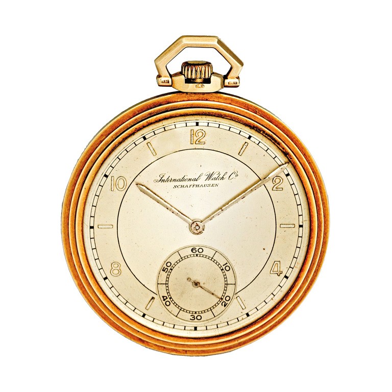 Svájc, 1920 körül, 1937-1966 közötti budapesti fémjellel is ellátva, 14 k arany art deco tok, arab számos percbeosztásos, kis másodperckörös számlap jelzett: IWC, fülön Marxen Lipót mesterjegy, szerkezetszám: 938052, tokszám: 25001, működik, Btto: 56,2 g;