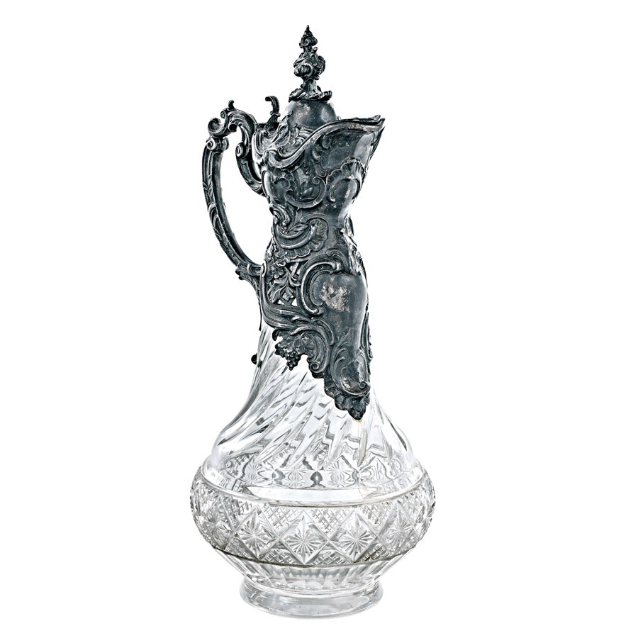 német, 1888 utáni hold korona fémjel és 1902 előtti behozatali jel, 800 ezrelékes antikolt ezüst szerelékkel, színtelen csiszolt üveggel, m: 38 cm