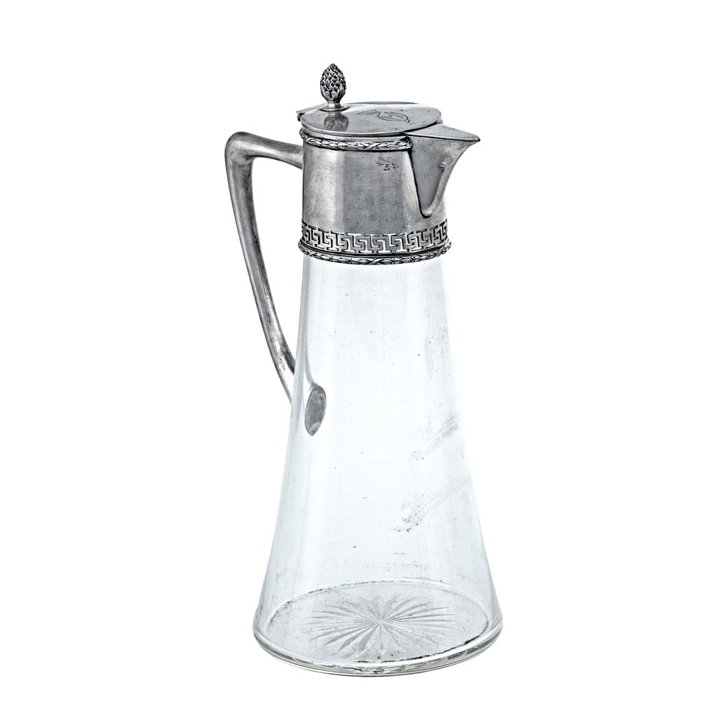 Bécs, 1872-1922 közötti fémjel, 800-ezrelékes ezüst szerelék, koronás GU monogrammal, Ferdinand Vogel mesterjegyével, csiszolt, köszörült színtelen üveggel, Neuwirth II. 259. o.