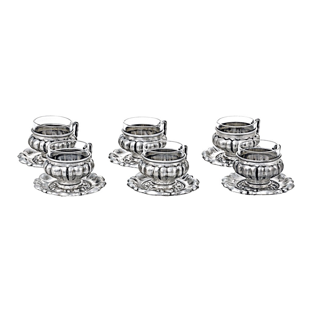 Budapest, 1937-1966 között fémjel, 800 ezrelékes ezüst, "BS" mesterjegy, hólyagolt díszítéssel, belül aranyozva, eredeti üvegbetétekkel