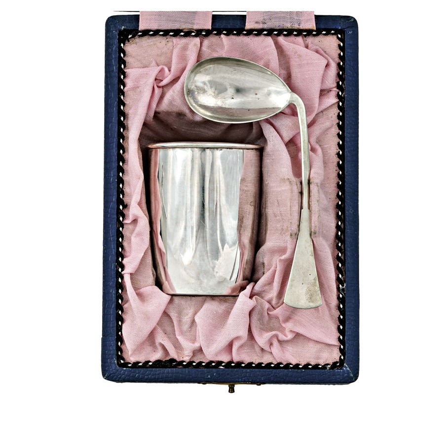 budapesti és lengyel jellel, 1940 körül, 800 ezrelékes ezüst, Állami Pénzverő és a kanálon lengyel "FB" mesterjegy, eredeti dobozban, 84 g; m: 7, 2-12 cm