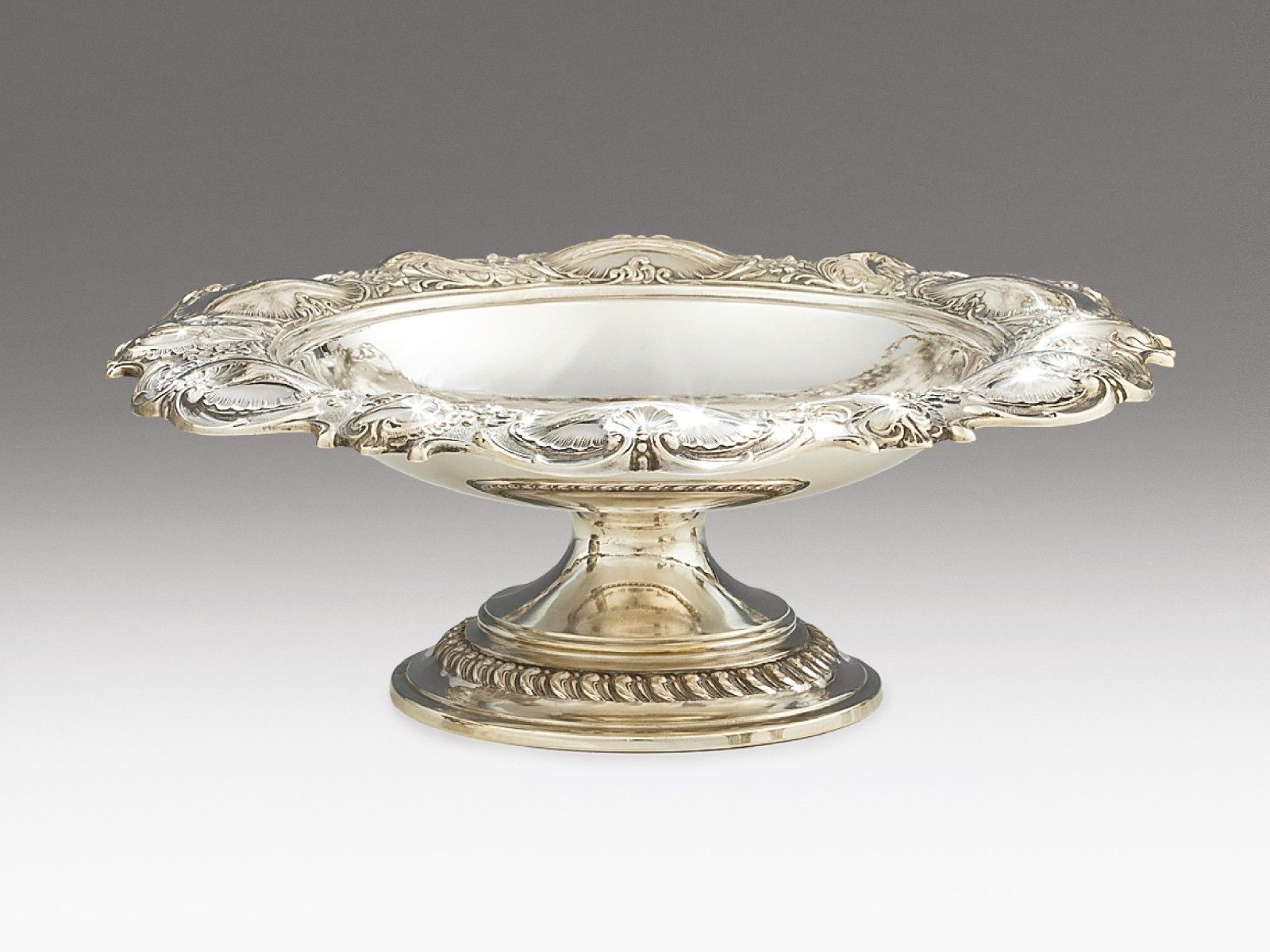 Neorokokó talpastál, ezüst, 388 g.