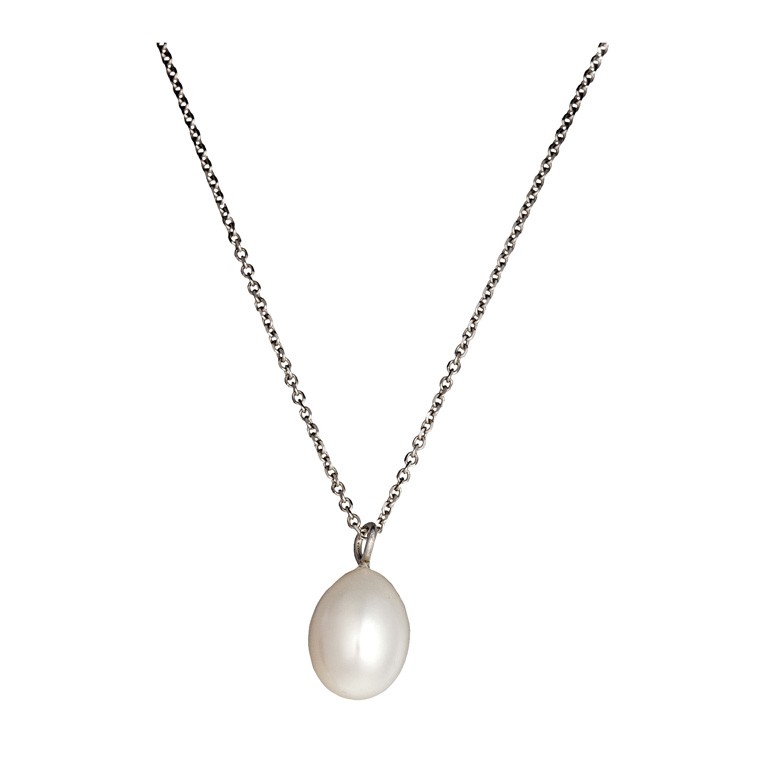 20. sz. vége, 1 db csepp alakú, tenyésztett, édesvízi, fehér gyöngy fénylő felülettel (12*10 mm) 14 k fehérarany anker láncon, lánc: 1,9 g; h: 40,5 cm