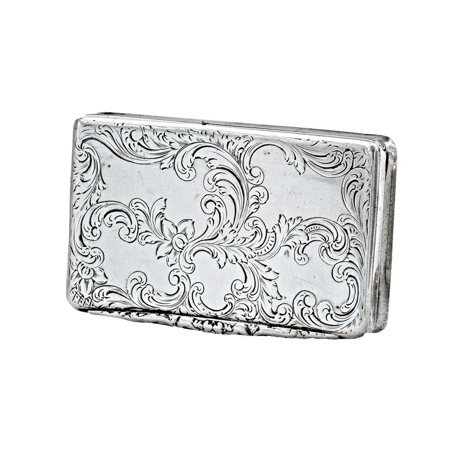 Bécs, 1845, 13 latos antik ezüst, "TS" (Thomas Scheidl) mesterjegy, belül aranyozva, vésett díszítéssel, 78 g, 8, 3*5, 2*1, 5 cm
