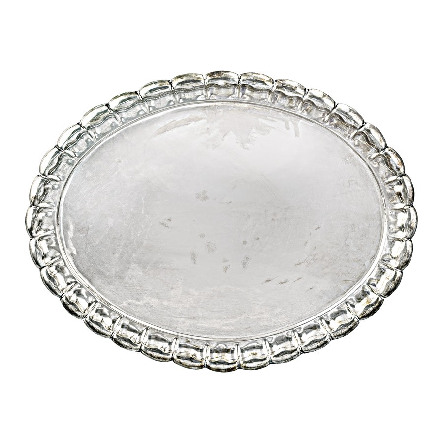 Budapest, 1937-1966 közötti fémjel, 800 ezrelékes ezüst, Péter Testvérek mesterjegy, hengerelt, kalapált, cakkos peremű forma, 1196 g; 39*49 cm