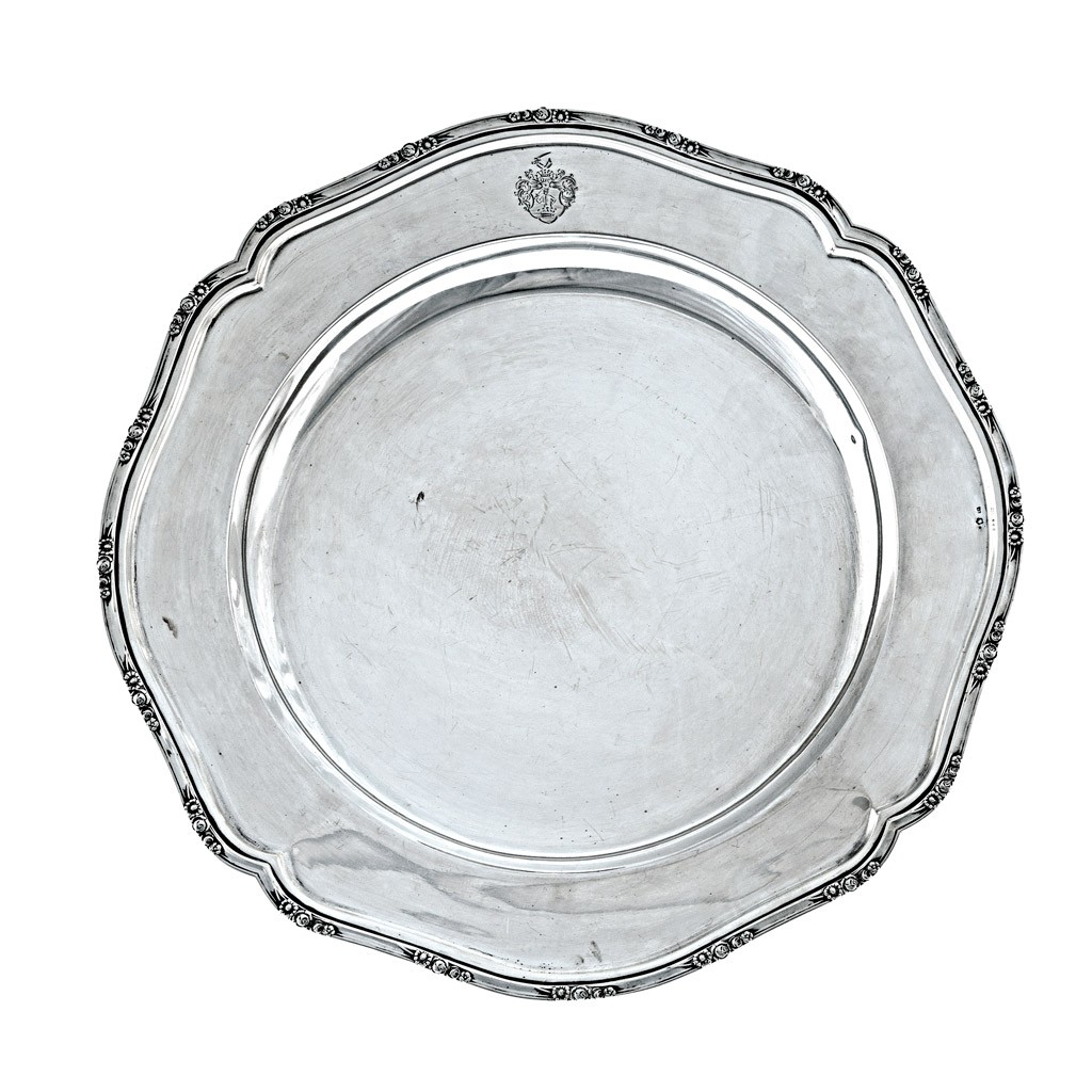 Bécs, 1872-1922 közötti fémjel, 800 ezrelékes ezüst, Franz Rumwolf mesterjegy, kerek öntött forma, vésett Girardi címerrel, és virágdíszes peremmel, Neuwirth II. 167. o.